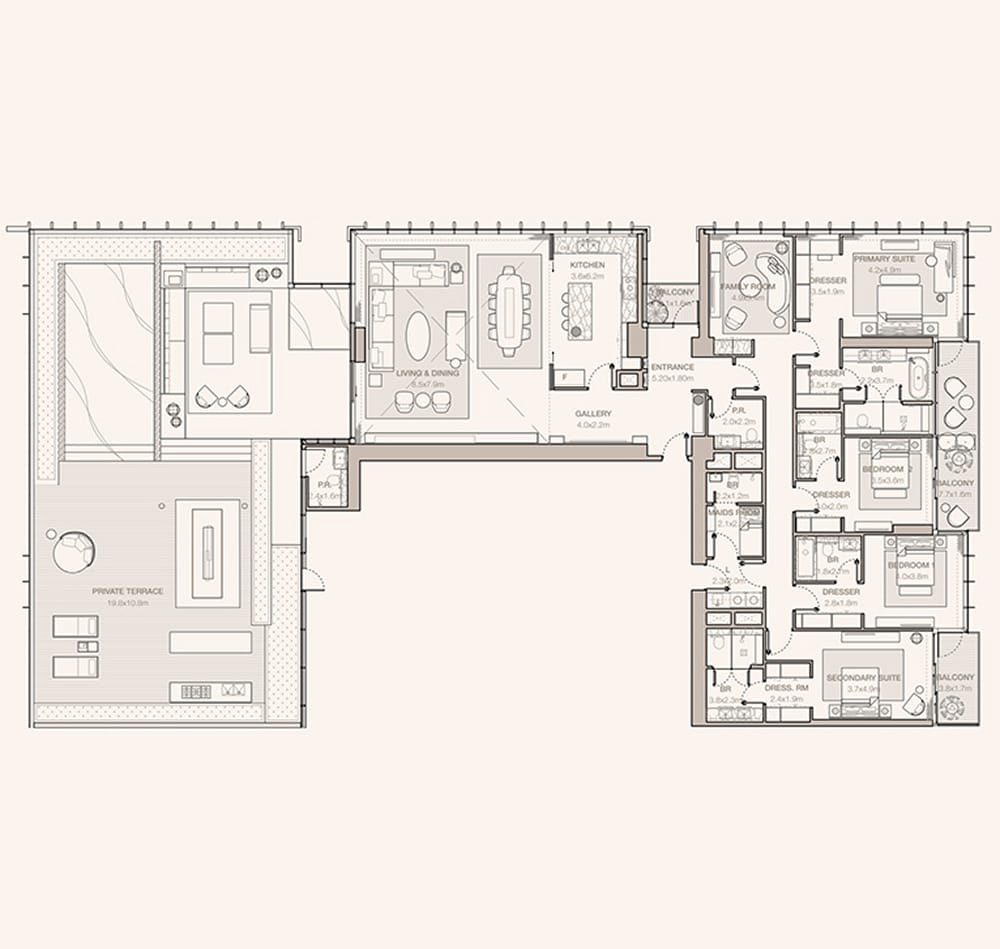 The two towers house a combined total of 754 residences—394 units in Tower A and 360 in Tower B. Each apartment is thoughtfully designed with luxury in mind, offering features such as walk-in wardrobes, double-height ceilings, and spacious balconies. Select 4-bedroom units are enhanced with exclusive elements like a plunge pool, landscaped garden, dining area, and private lounge, elevating the experience of upscale city living.